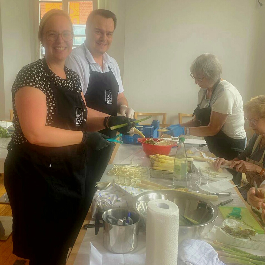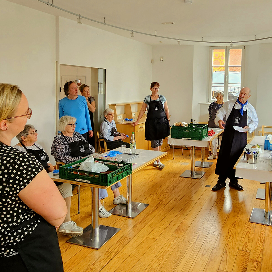 Unter der fachkundigen Anleitung von TV-Koch Franz-Xaver Bürkle wurde gemeinsam geschibbelt, gekocht und natürlich lecker gespeist.